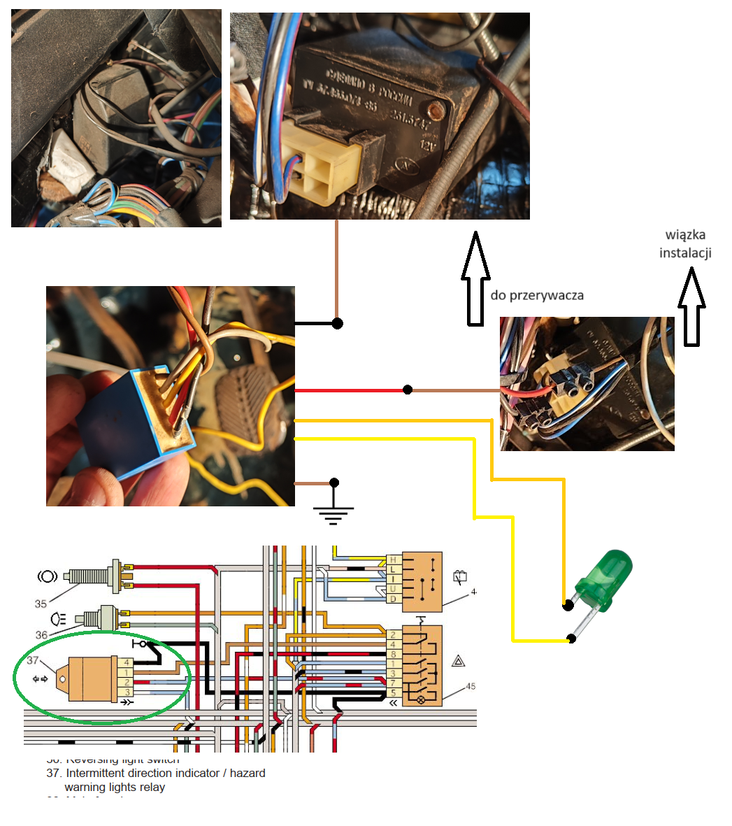 Jestem świeżym posiadaczem Łady Niva i robię porządek z elektryką. Jestem miło zaskoczony, bo są tylko dwie "przeróbki", ale i tak wprawiają mnie w zakłopotanie. Ta na której najbardziej mi zależy, to co to jest za element? Producentem jest "intramco nl", wystaje 5 przewodów: 2 idą na przerywacz kierunkowskazów (rozcięto jeden przewód wiązki i połączono "w przelocie"), 2 kolejne idą na LED, która świeci, i ostatni na masę. Niestety brak jakiegokolwiek oznaczenia. Prośba o pomoc w identyfikacji. Z góry dziękuję.