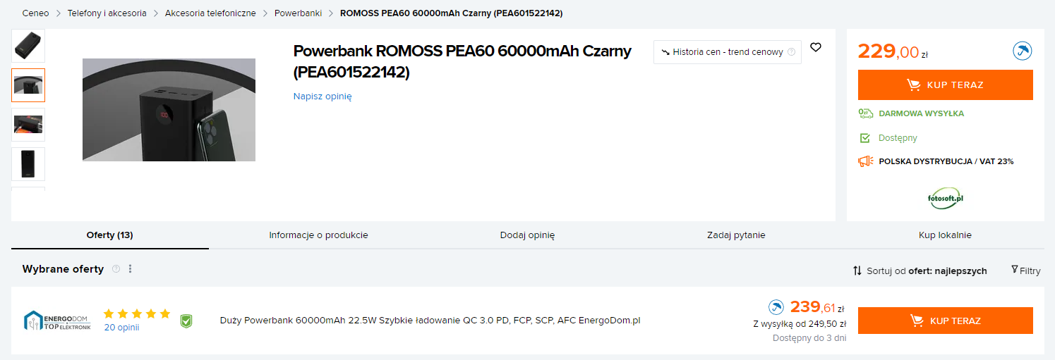 Powerbank ten do kupienia jest za jakieś 230 zł: