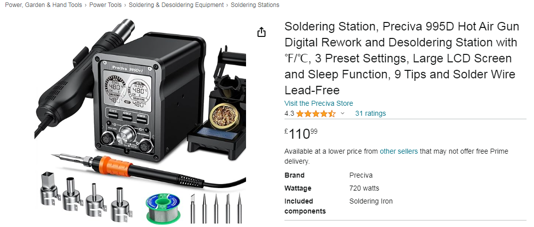 Moje poprzednie testy pokazały wyraźnie, że JCD 8908 i SP-1011DLR nie dają rady nawet bez pomocy podgrzewacza wylutować elementu z wylewki miedzianej na płycie od laptopa, a Preciva jest w stanie to osiągnąć.