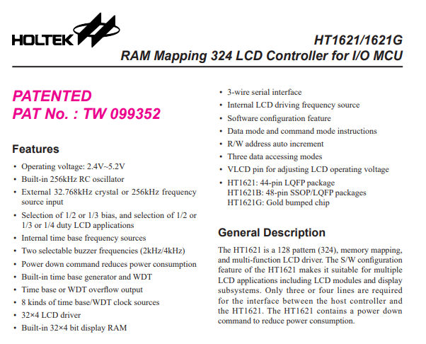 HT1621B posiada interfejs szeregowy. Steruje nim główny MCU, czyli S3F8S19XZZ;