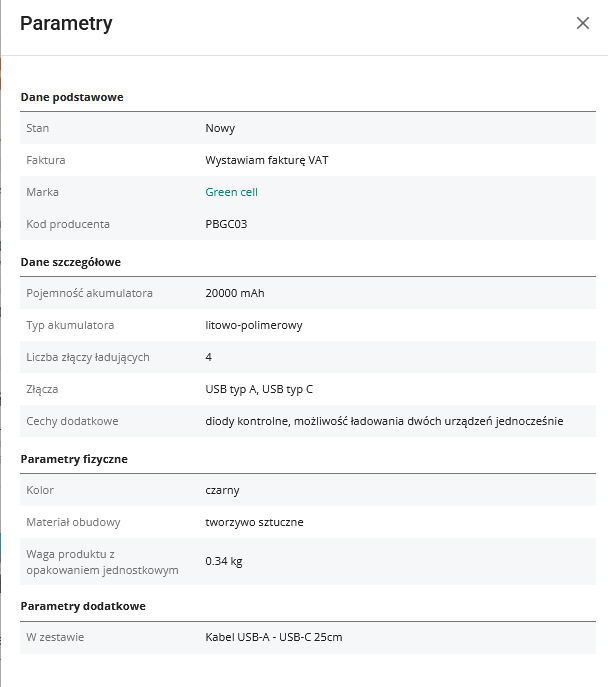 No i powerbank - wedle informacji z obudowy w środku jest ogniwo 3.85V 10000mAh.