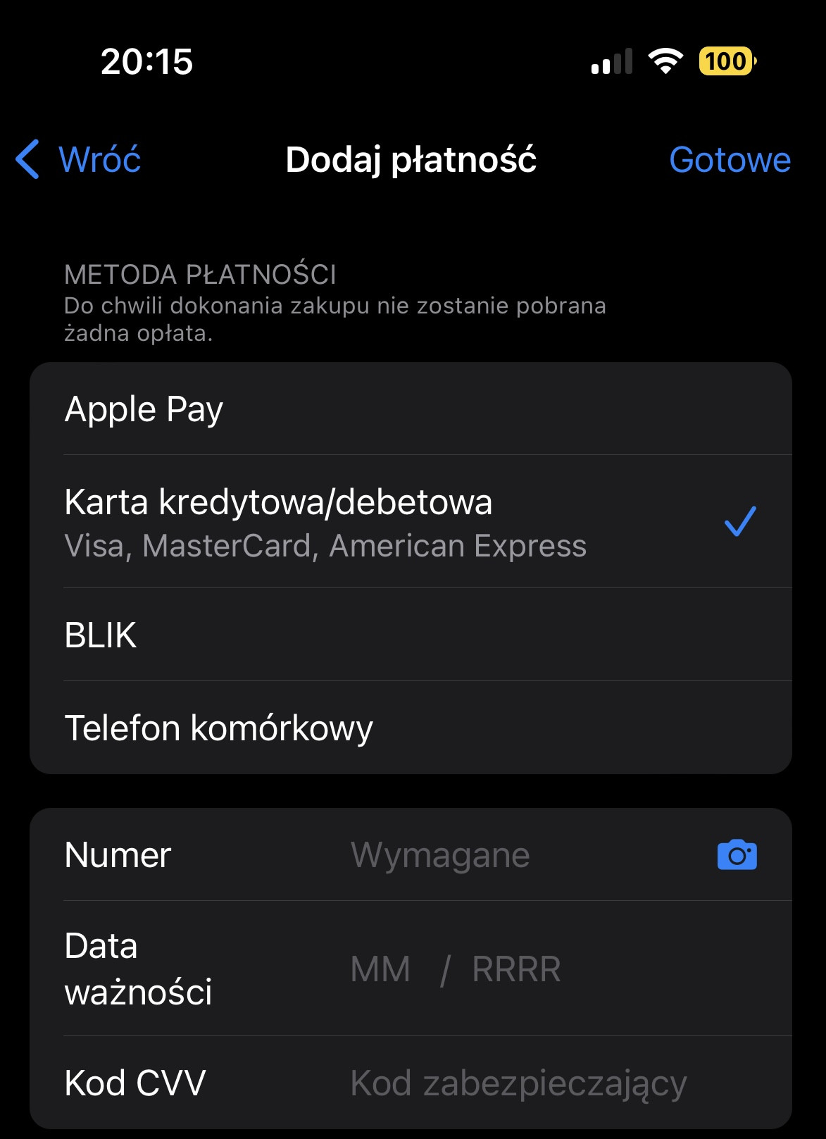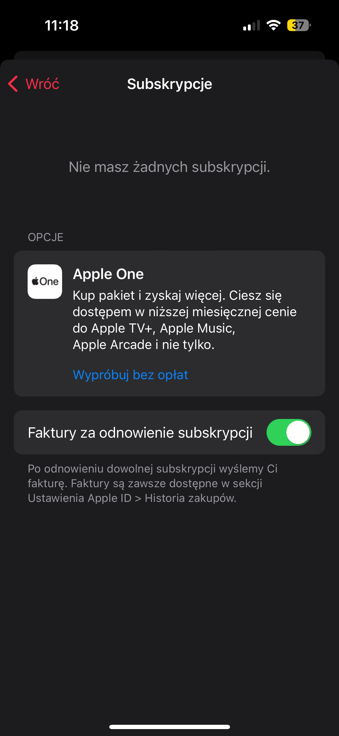 Nie masz żadnych aktywnych subskrypcji. Apple jest taki cwany, że nie pozwoli na założenie subskrypcji jeśli się nie ma funduszy na koncie Apple lub powiązanej z nim karty płatniczej.
