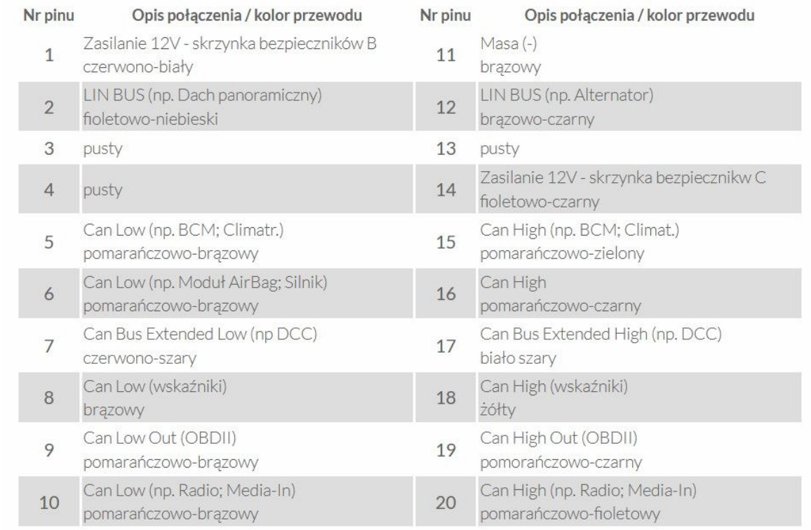 wtyk gniazdo G pin 7 Bramka Can Bus Low i pin 8 Branka Can Bus High,