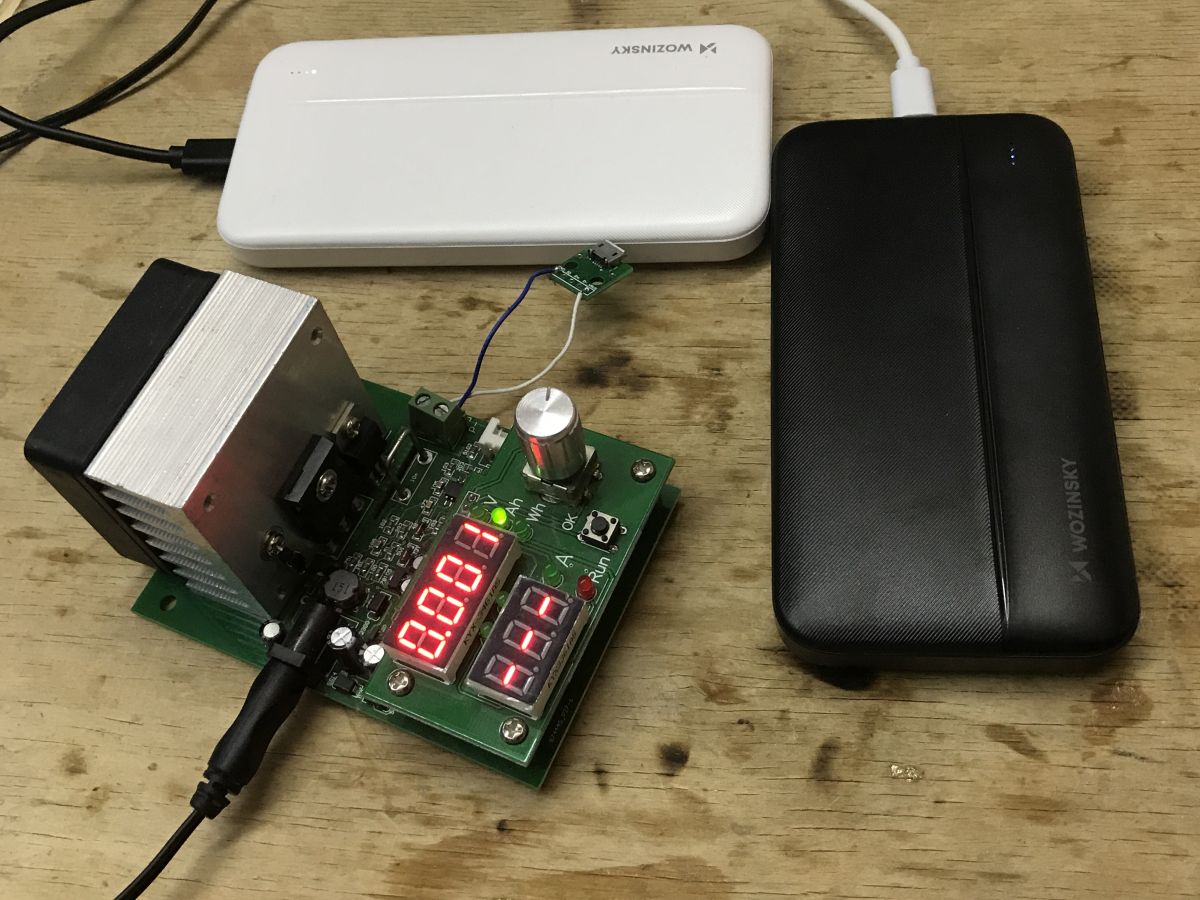 Teraz pora zmierzyć pojemność. Potrzebne jest najpierw jednak standardowe przypomnienie - producenci podają zazwyczaj pojemność ogniw, więc na wyjściu 5V (też za przetwornicą) jak wykonamy pomiar to otrzymamy rezultaty które najpierw trzeba przeliczyć.