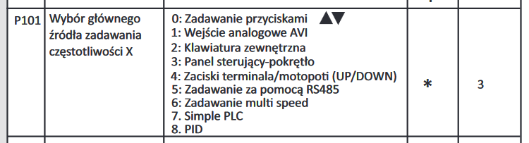 Przełączyłem oczywiście przełącznik w falowniku na sterowanie "I" oraz parametr P101 ustawiony na 2.