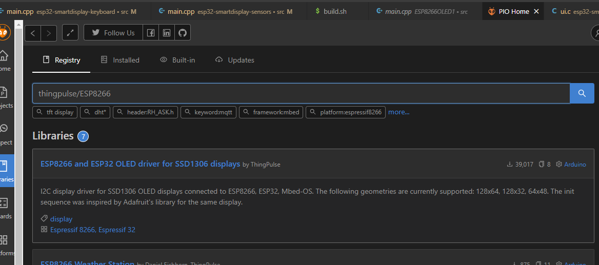 Następny etap to biblioteka dla wyświetlacza SSD1306. Oczywiście jest gotowiec: