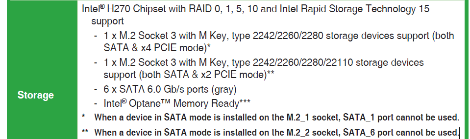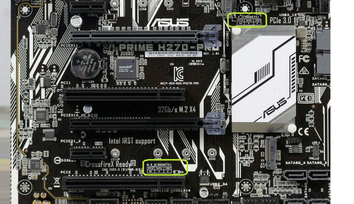- Płyta główna ASUS PRIME H270-PRO korzysta z chipsetu Intel H270, który oferuje 20 linii PCIe. Te linie są dzielone między różne komponenty, takie jak sloty PCIe x16, x1, porty SATA i sloty M.2. Może to prowadzić do konfliktów w przydziale linii PCIe, szczególnie gdy próbujesz podłączyć dwa dyski NVMe jednocześnie.