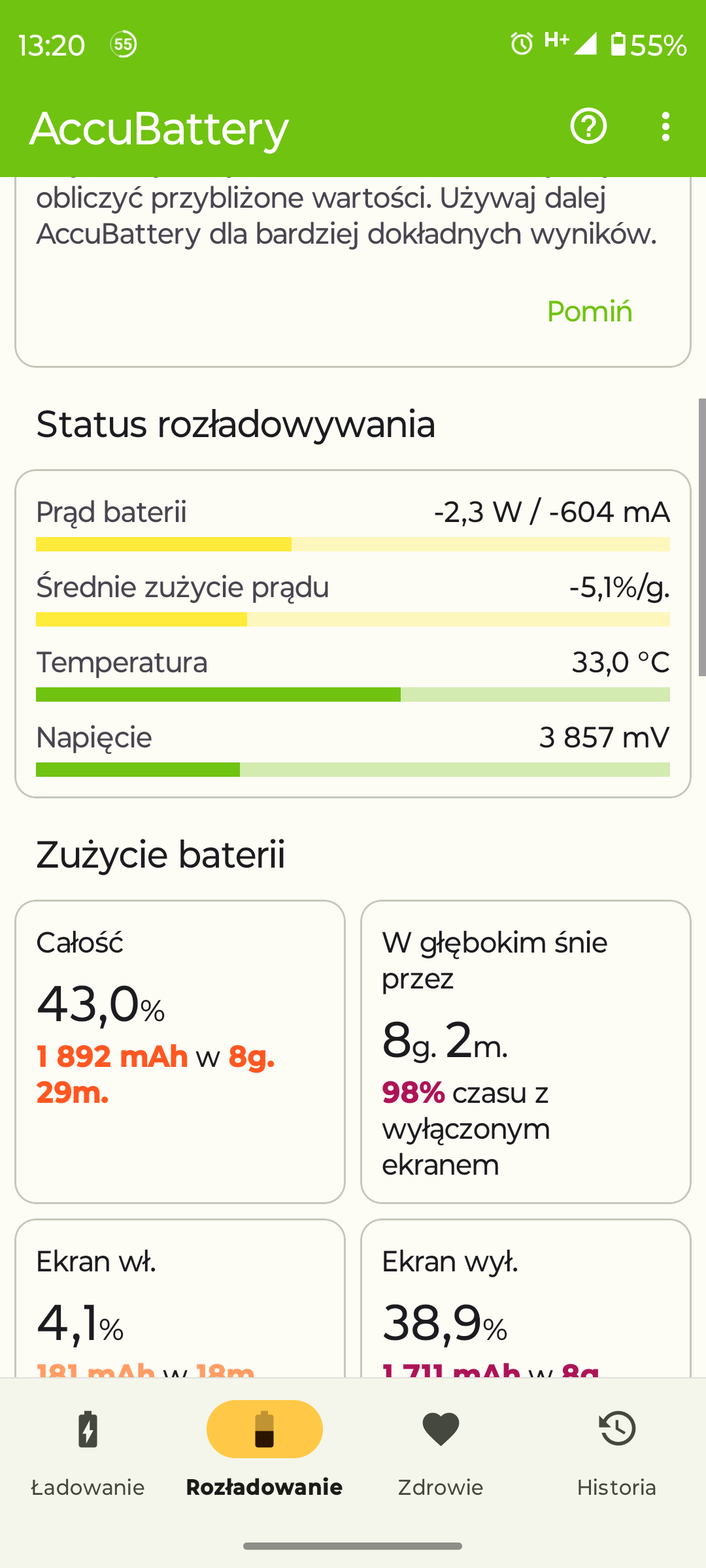 #1 21153899 14 Lip 2024 14:15 matijas1994 matijas1994 Poziom 5 #1 21153899 14 Lip 2024 14:15 Cześć wszystkim mam problem z mocnym rozładowywaniem baterii w motorola edge 30 fusion na wyłączonym ekranie podczas uśpienia w 7 godzin w trybie samolotowym potrafi mi zjeść 40% baterii.. czy wie ktoś jak moge sprawdzić dlaczego tak się dzieje ?? Dodano po 51 [minuty]: Promuję tematy: 26.03.2020 Mercedes Atego 1228: przepalanie bezpiecznika 20A przy włączonym silniku
