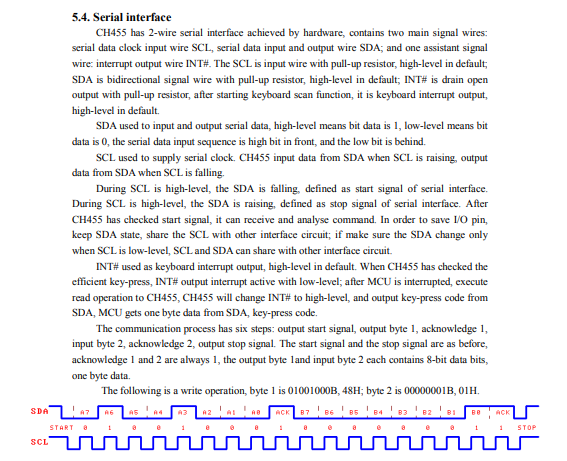 Poniższa sekcja noty katalogowej może wyglądać strasznie, ale na szczęście to wszystko jest mniej więcej standaryzowane, tak jak zresztą napisali na początku, "compatible with I2C". Komunikacja tam podzielona jest na transakcje, każda wysyła daną ilość bajtów, poprzedzona jest warunkiem start i zakończona warunkiem stop.