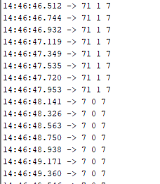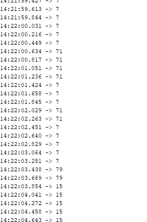 Bardzo ładnie widać tu jak trzymałem klawisz o kodzie 7 a potem go zwolniłem: