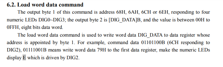 Dodatkowo nie widzę tu adresacji urządzeń. Pierwszy bajt to rejestr, a drugi to wartości do wpisania. Ten sam schemat występuje i dla konfiguracji wyświetlacza (jeden rejestr) i dla wyświetlania cyfr (cztery rejestry, po jednym na cyfrę).