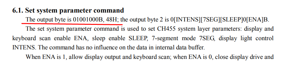 A więc mamy format komendy najpierw 0x48, a potem bitowo 0[INTENS][7SEG][SLEEP]0[ENA].