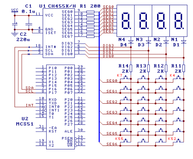 Schematów połączenia jest kilka, oto najbardziej podstawowy (8 segmentów, wyświetlacz z wspólną katodą):