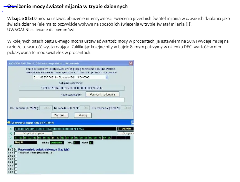 Byłem u elektryka i próbował zmienić za pomocą VCDS kodowanie lamp, ale wychodzi mu, że kodowanie jest oryginalne, tak jak powinno być dla lamp oryginalnych. Mówi, że ktoś musiał zmienić kable, ale są oryginalne wtyczki, z tyłu nie widać żadnych przeróbek.