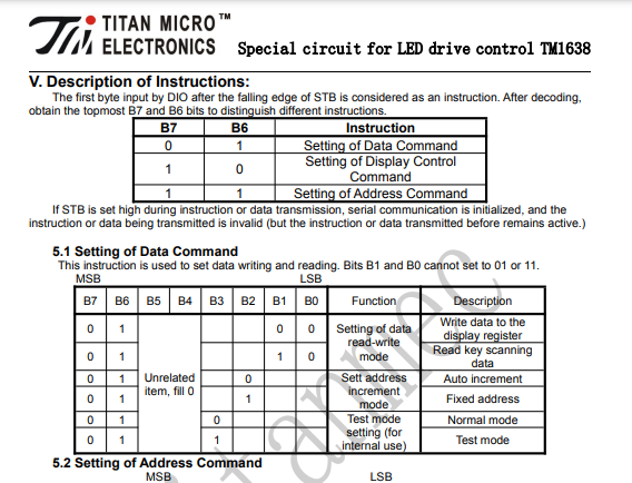 - adresy rejestrów i ogólnie sposób komunikacji z TM1637 jest zgodny