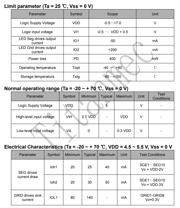 - same kody bajtowe znaków zdają się być takie same, bez względu na typ wyświetlacza, TM1638, TM1637, HD2050, GN6932, itd.