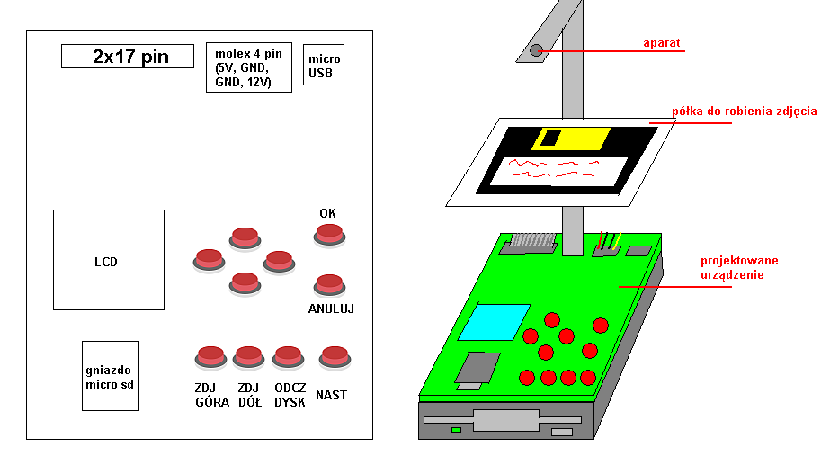 Urzędzenie ułatwia robienie obrazu bitowgeo dyskietek oraz wykonuje zdjęcia góry i dołu dyskietki (ewentualnie też koperty, jeśli dyskietka jest w kopercie).
