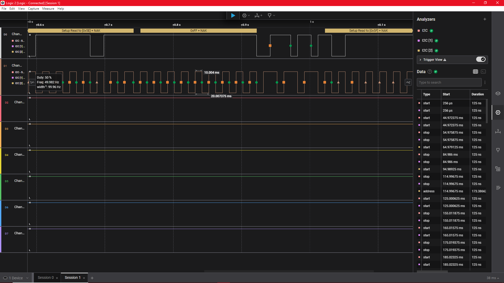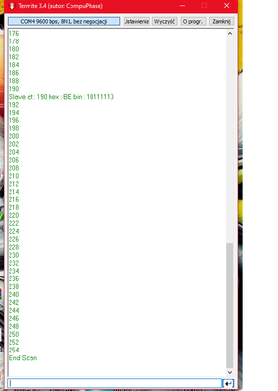 mianowicie mój problem polega na tym iż jest głucha na próby komunikacji z nią po i2c. skanuję wszystkie nieparzyste adresy, chociaż wiem że powinna odpowiedzieć na zapytanie o adresie 191dec.