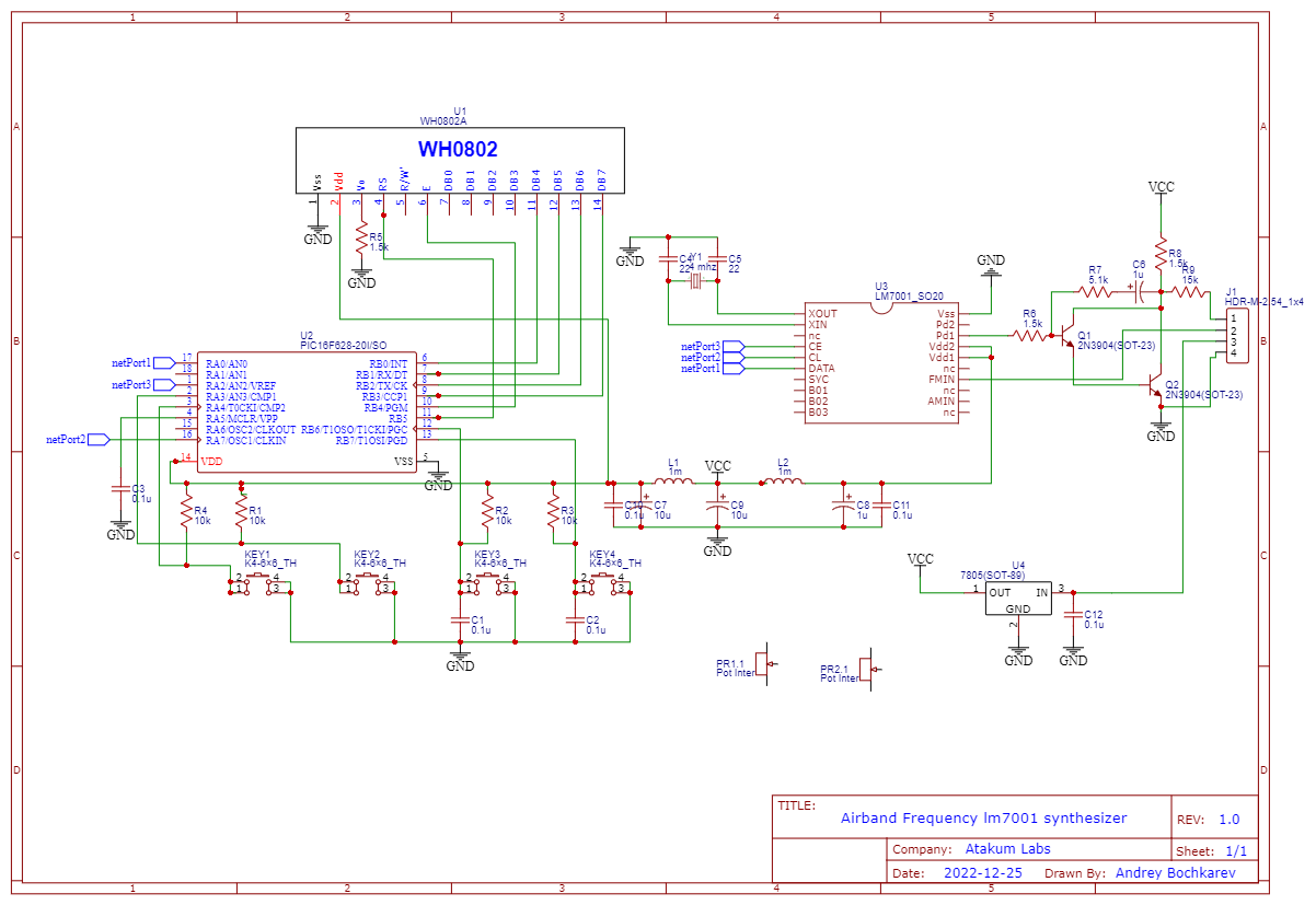 Co do pierwotnego wariantu z mikrokontrolerem typu PIC, to on steruje układem scalonym LM7001J, który jest szeroko stosowany w odbiornikach AM/FM. Schemat znalazłem na portalu rosyjskich amatorów. Ja opracowałem tylko płytkę, uwzględniającą obudowę typu HH-8082, produkowaną w Turcji przez firmę Altinkaya.