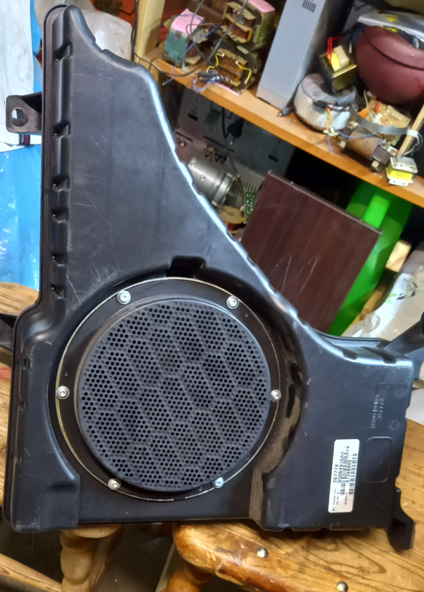 Kupiony mam sub od Fiata Freemont, taki z 20 cm głośnikiem 2 cewkowym i plastikową obudową 18 litrów w kolo chyba systemu Alpine, która, jak się spodziewałem, nie pasuje mi do wnęki bagażnika Ibizy 6L.