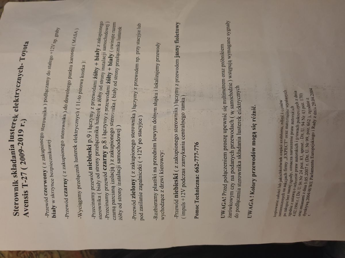 Witam, potrzebuję instrukcji ze zdjęciami do których kabli mam podpiąć sterownik. Posiadam instrukcję dostarczoną z sterownikiem, ale to jakaś pomyłka, instrukcja bez użyteczna. Wcześniej byłem posiadaczem avensis t25 i instrukcja była profesjonalna i ze zdjęciami. Dziękuję za pomoc