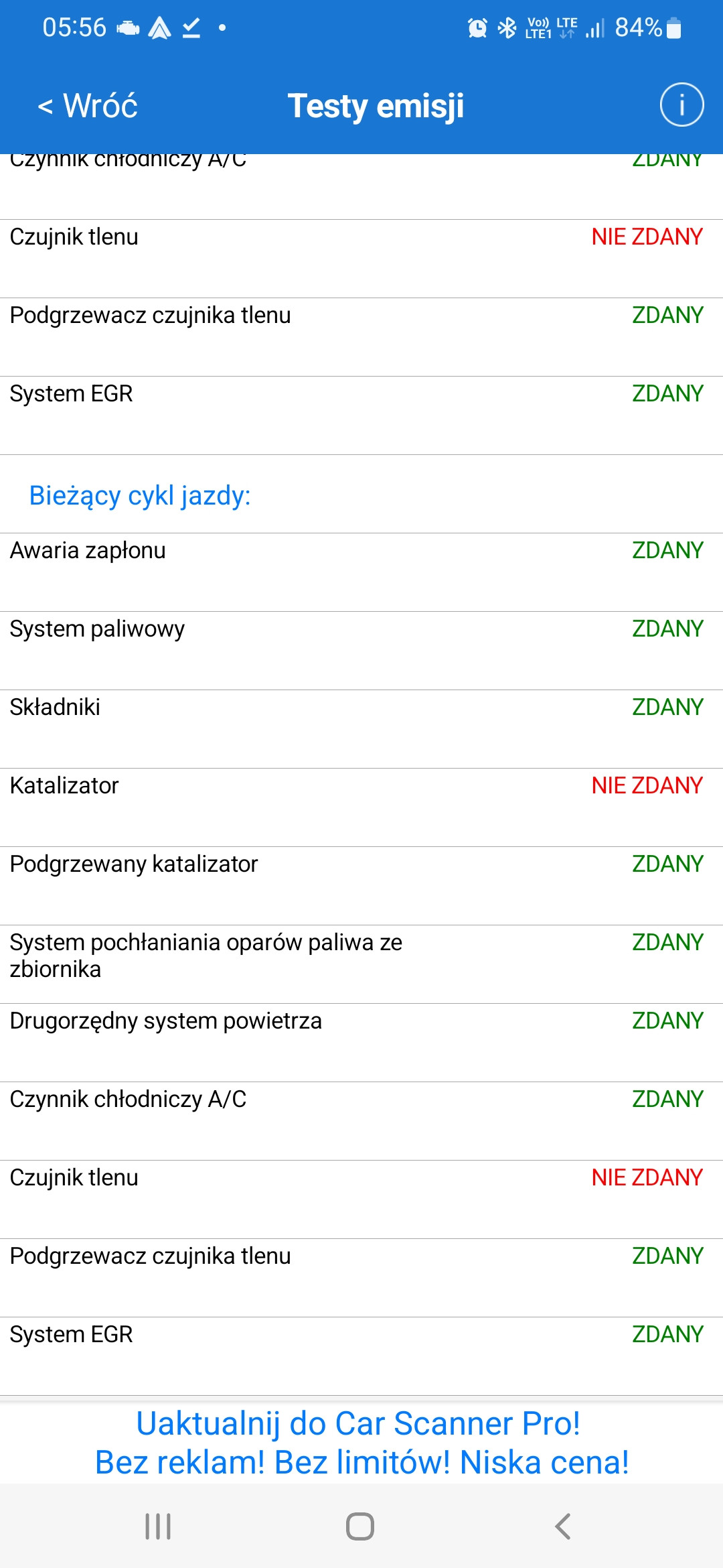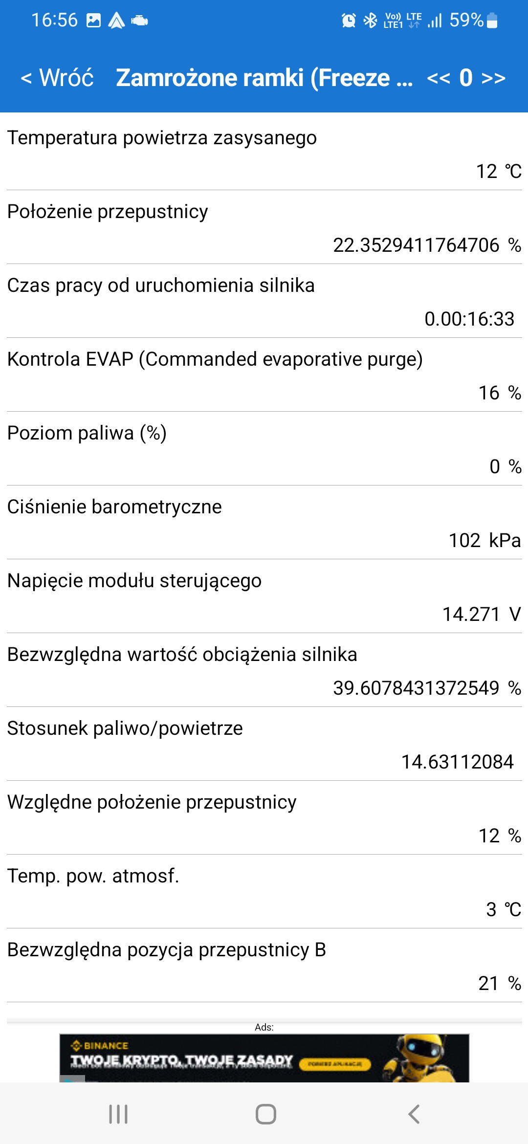 Przy dłuższej jeździe na gazie sonda już nie reaguje i pokazuje stale 0,2 V.