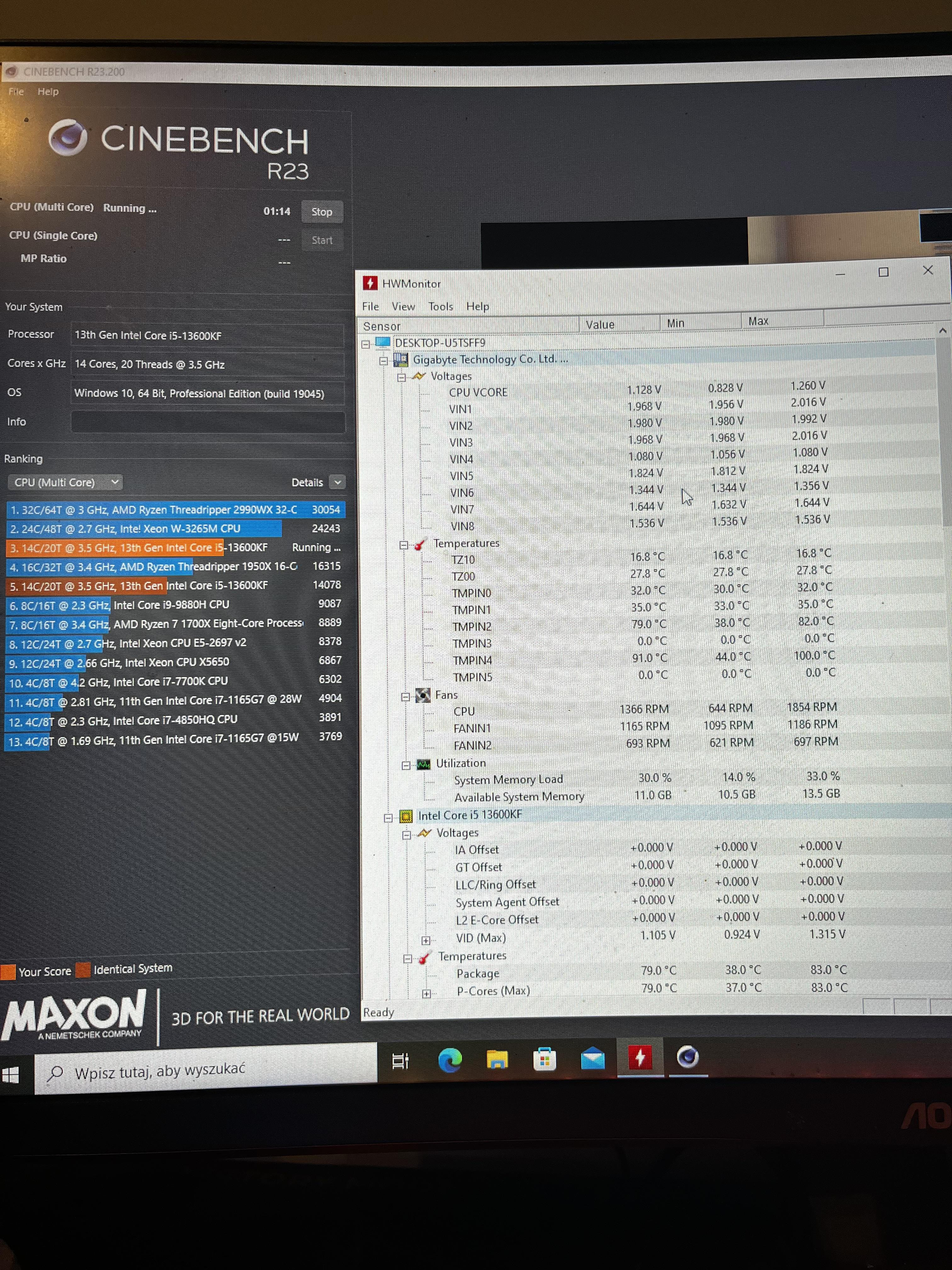 Cześć, potrzebuje pomocy z undervoltingiem. Kupiłem i5 13600kf do tego płytę h610 v3 ddr4 i podczas odpalenia cinebench r23 moje wyniki są bardzo zaniżone. Wyniki powinny być +24.000 a są na 19.000 a za którymś razem spadły do 16.000 w dodatku podczas grania są lagi i spadki zwłaszcza podczas dynamicznych rozgrywek. Chciałbym się was poradzić czy znacie jakieś ustawienia w biosie które mogą mi pomóc, chciałbym również zrobić undervolting. Ma ktoś i5 13th z undervoltingiem i pomoże z problemem? Wiem że nikt wróżką nie jest i nie zna moich napięć ustawień itp więc wrzucę tutaj zdjęcia wszystkich ważnych (według mnie) ustawień. Dorzucam zdjęcia z HWMonitor podczas cinebench r23 (PO WŁĄCZENIU XMP NA 1)