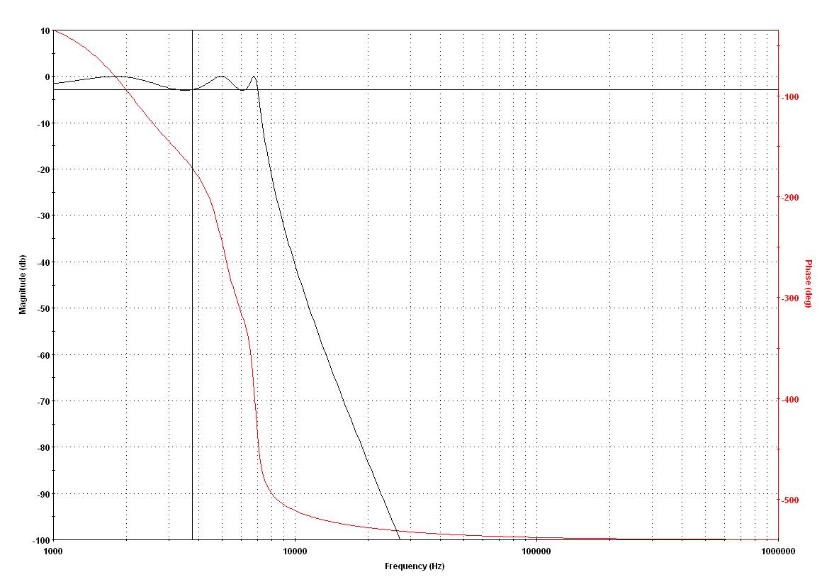 Musz zbudować wyżej wymieniony filtr. Zaprojektowałem go sobie w filterlabie(f. czebyszewa 6-biegunowy) i złożyłem na LM324. Niestety nic mi się niezgadza. Spadek3dB miał być na 7000Hz a jest jużna 1kHz. Miałem już przypadek że ten program źle mi policzył parametry do filtru Bessela, ale tam mi się udało to poprawić.