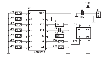 jako dekoder. Kod ochronny ustawiamy za pomocą jumperków JP1-JP9 zarówno po stronie nadajnika jak i odbiornika.