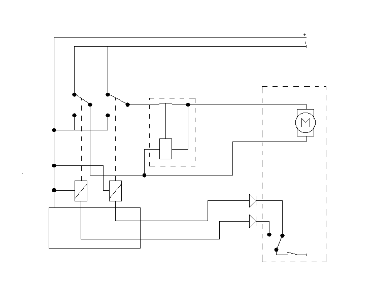 jest to centralka do sterowania centralnym zamkiem. do jej budowy zostały użyte dwa przekaźnki samochodowe oraz przekaźnik czasowy. "M" oznacza silniczek zamykania drzwi a styki są umiejscowione w siłowniku typu master.