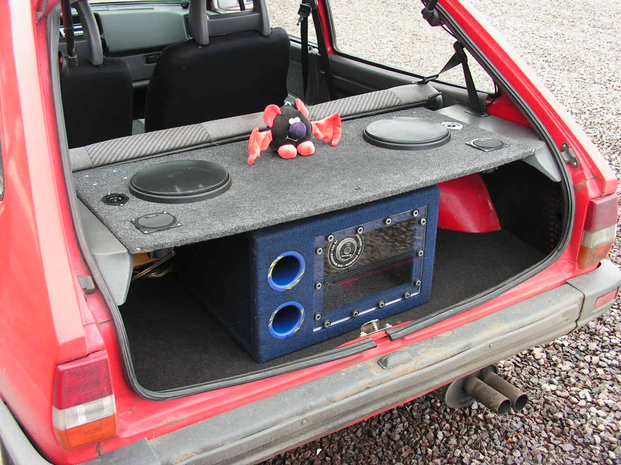 Witam wszystkich! chciałbym poznać waszą opinie na temat częstotliwości strojenia mojej instalacji car audio.zamieszczam fotke jak wygląda tylny systemik.sprawa która mnie gnębi to fakt ,że posiadam nagranie BASSTEST (wypowiedziana częstotliwość i podany dzwięk jej odpowiadający) wedłóg którego mój obecny zestaw stroi na częstotliwości 170Hz.po zmianie obudowy subwoofera na bassreflex wyszło 190Hz ,a na popularną rure TUBE 210Hz.wszystkie próby robiłem na tym samym głośniku basowym.efekt odsłuchowy jest taki ,że na bandpasie najlepiej gra hip hop,rap.na bassreflexie wszystko po trochu.a na tubie tylko i wyłacznie typowa łupanka techno.dręczy mnie z kąd w wielu opracowaniach systemów głośnikowych uzyskuje sie strojenie na np.65Hz?. jaki typ muzyki ma uwydatnione to pasmo?.bo czy bass moze być jeszcze niższy od tego który gra u mnie?skoro kazdy kto u mnie przez chwile posłucha muzyki rzuca stwierdzenie ,że płatki nosa mu wibróją i robi mu się niedobrze.moze mój basstest oszukuje? pozdrawiam.