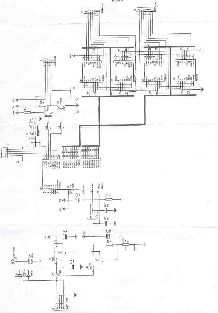 W załączniku schematy sterownika + pamięci, wsady mikrokontrolera, wzór płytki i montażowy, program Running Line.