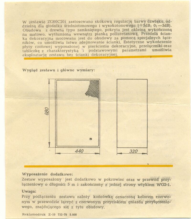Ostatnio u kolegi obczaiłem te klocuszki. Wyglądają na estradowe, bo wogóle bas w domu nie gra. Wystawiliśmy jedną na chwile do okna i tu poczuliśmy dobre brzmienie. Problem w tym, że nie wiem co tam siedziało (brak średniotonowych i jednego GDWK). Rok produkcji to 1979, około 80cm wysokości i 40-50 szerokości. Są już nieco sfatygowane, ale dolne pasmo jest piękne i wogóle nie zniszczone - 30cm, 60 watów. Niskotony są szarego koloru z odcieniem zieleni. Tylko nie wiem co z wysokotonówkami - jedna jest kwadratowa, tubowa, a druga kopułkowa, z czerwoną kopułką. Nie wiem który jest oryginalny. Wiem, że trudno będzie znaleźć osobę która zna ten zestaw, ale liczę na to. Może uda mi się ściągnąć oznaczenia głośników