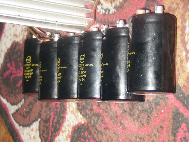 Kondensatory tzn. bateria kondensatorów to firma Efrolyt 4700uF 63V x 6 (powinno w zupełności wystarczyć).