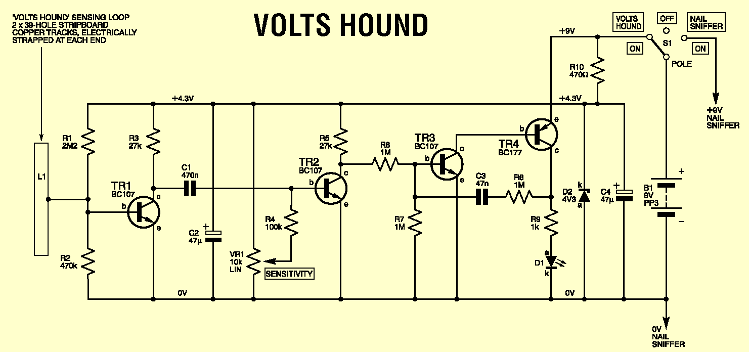 Całość składa się z dwóch układów: detektora napięcia a.c. oraz detektora metali. Pierwszy układ pozwala na wykrywanie przewodów w ścianach znajdujących się pod napięciem przemiennym. Drugi pozwala na wykrycie przewodów nie znajdującymi się pod napięciem/rur wszystkiego co metalowego co może znajdować się w ścianie.