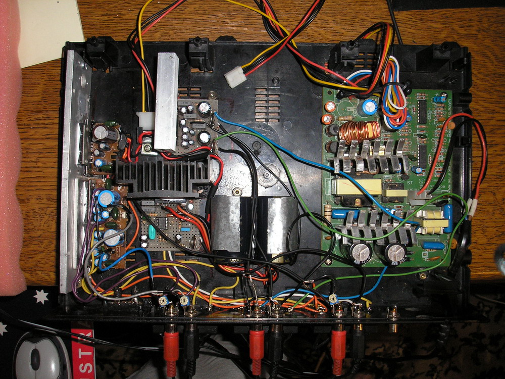 Skonstruowałem ,z cześci które posiadałem (w wiekszosci) w swoich zbiorach i które prawdopodobnie nigdy nie byłyby wykorzystane, wzmacniacz 5.1 kanałowy. Do konstrukcji użyłem wzmacniaczy uPC1230 NEC'a 3szt (fronty + centralny) ha 1377 hitachi wzmacniacz stereo surroundy i tda1562q subwoofer ponieważ konstrukcja nie jest jeszcze zakończona i narazie współpracuje tylko poprawnie z kartą muzyczną SBlive 5.1 nie zamieszczałem tej konstrukcji w dziale DIY.