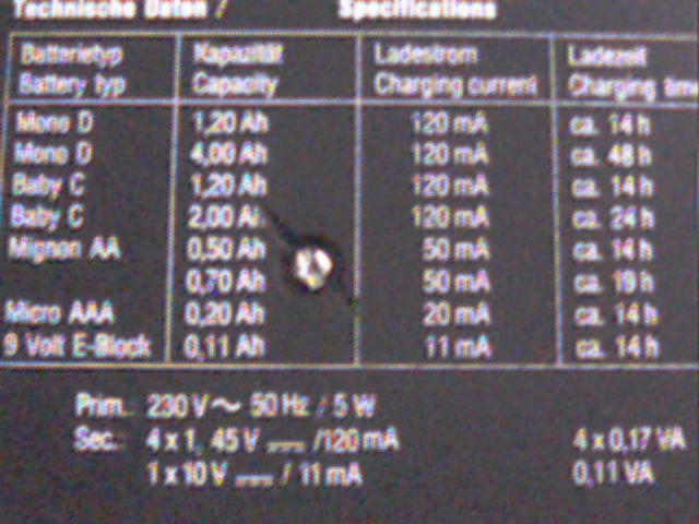 http://www.ansmann.de/en/view.htm?oid=&open=picture1&what=product&id=362 i chcialbym nia ladowac do mp3 akumulatorek forevera 1,2V AAA 1100 mAh, jednakze oznaczenia na ladowarce chyba nie zgadzaja sie z rzeczywistoscia, bo watpie zeby ten AAA trzeba by ladowac 14 h..czy ma ktos mzoe taka ladowarke albo wie ile ladowac. Nizej zamieszczam oznaczenia na ladowarce