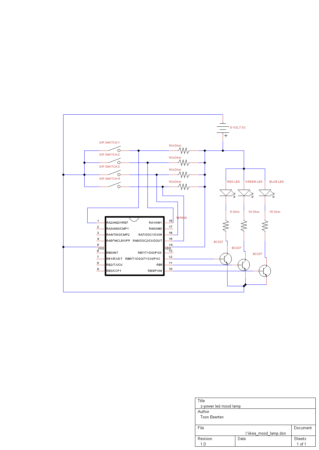 kilka 1 watowych rezystorów (5,10,15om), przełącznik DIP