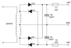 mam dwa wzmacniacze mocy AVT-890, ktore zasilam z jednego transformatora toroidalnego 150VA. Kazdy ze wzmacniaczy posiada w zasilaczu po 2 kondensatory 4700uF po stronie + i po stronie - zasilania.