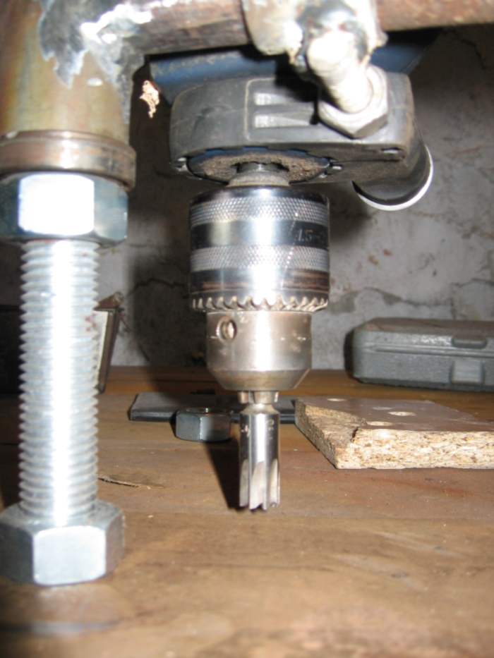 wszystko zmontowane jest na śrubie 20 mm ramie zostało przykręcone do tej śruby jest na łozyskach dlatego wszystko jest stabilne i nie ma mowy o żadnych luzach do wycinania uzywam wiertarki i frezu (niewiem dokładnie jaki to typ frezu tata przyniusł mi z pracy:jeśli nie macie takiego frezu to mozna użyć złamanego fiertła(mozna je oczywiście samemu przeciąć