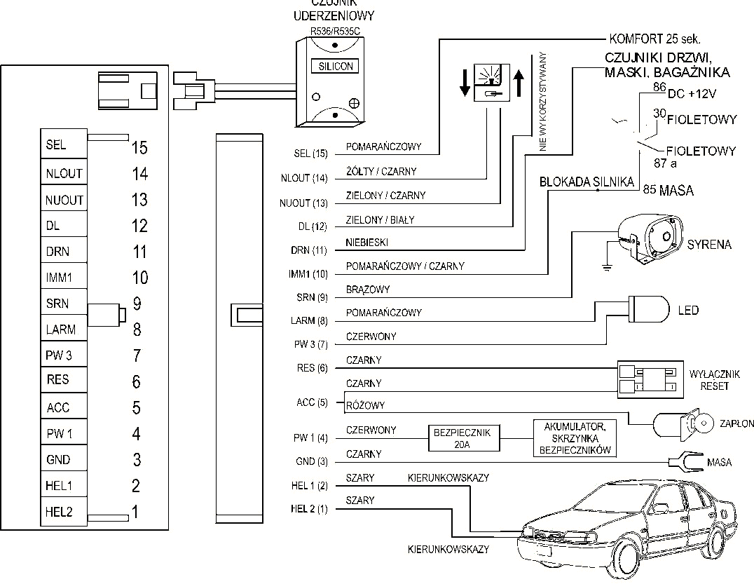 Teraz sprawa jest rozwiazana na 1 siłowniku master i jednym slave. centralny jest wraz z alarmem w jednej centralce Silicon Ultimate. Jeszcze nie rozbierałem zadnych drzwi bo wole wiedziec na co sie przygotowac. Wiem tylko ze w drzwiach od kierowcy jak pewnie w większości pojazdów jest siłownik Master. Czego szukac i od czego zaczac podłączanie siłowników na tył. Poniżej załączam schemat podłaczenia.