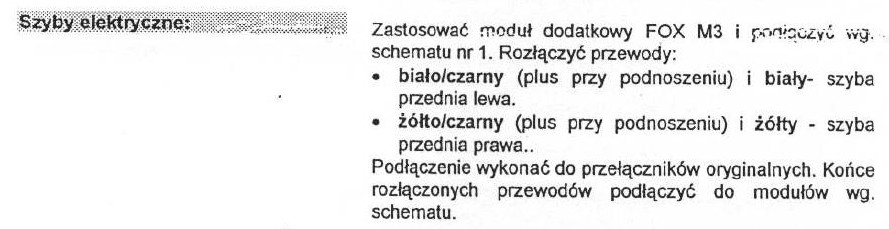 Zlokalizowalem przewod, na ktorym pojawia sie +12V podczas zamykania szyb. Tam przecialem przewod i wpialem szeregowo modul odpowienimi wyprowadzeniami. Probowalem w 2 storny tylko nei weim czy ma to znaczenie. Sygnal dalem z alarmu z 3 kanalu do zamykania - fubnkcja komfort, ale probowalem rowniez bezposrednio dosilownika od centrala i NIC