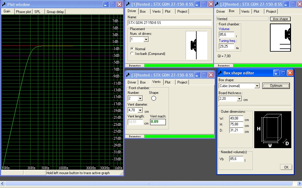 kupiłem niedawno 2 głośniki niskotonowe stx 27-150-8. Chciałbym zbudować kolumny, ale nie wiem jaka ma byc obudowa(ile litrów) i jak długi bass reflex (chciałbym zastosować 2 w jednej kolumnie jak w altusach).