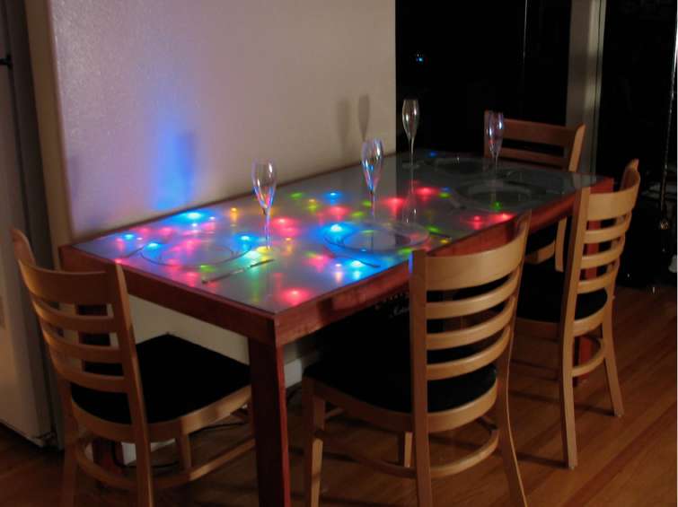 Rama tego stołu wykona została z drewna, a blat z matowego szkła, pod którym rozmieszczonych zostało 448 diod LED, zapewniających ciekawy efekt wizualny. Wykonanie stołu, zajęło niespełna miesiąc. Autor tego projektu wykorzystuje go codziennie, jako stół w pokoju jadalnym.