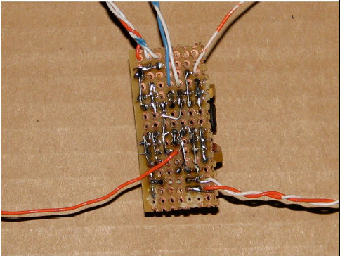 Diody rozmieszczone zostały w specjalnej płycie z otworkami (wielkość LED-ów idealnie pasowała do średnicy otworu). Montowanie diod w płycie, lutowanie połączeń między nimi oraz ostateczne przytwierdzanie diod do płyty za pomocą kleju okazało się czynnością bardzo pracochłonną i zajęło autorowi projektu dużo czasu.