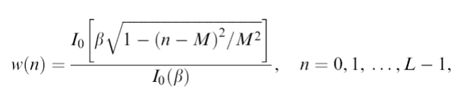 Ja funkcję okna Kaisera zapisałem tak (oznaczenia podstawić z dowolnej książki):