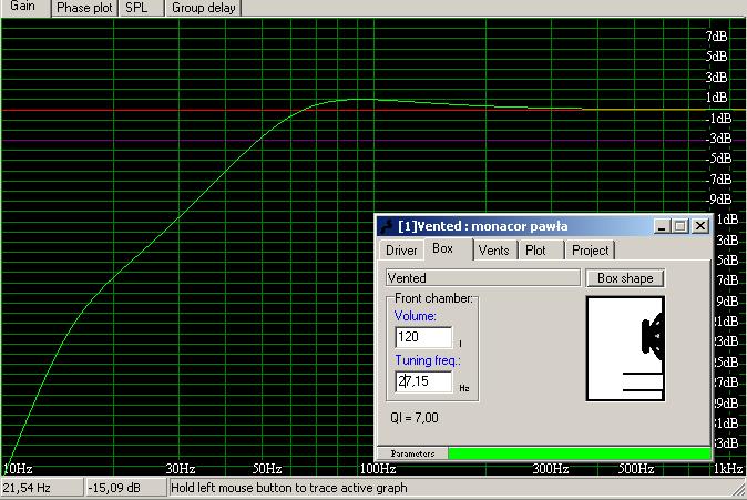 witam, kolega poprosił mnie zebym zbudował skrzynie do glosnika Monacor SP385G. jest to 15' estradowa ale on wymyslil sobie ze chce to do domu jako subwoofer. Odradzałem mu bardzo ale sie uparł i juz kupił. dlatego mam pytanko jakiej pojemnosci obudowe zrobic? Myslałem nad obudowa ok 120l 27Hz wtedy ma jakies zejscie i dobry impuls. wyglada to mniej wiecej tak: Co o tym myslicie