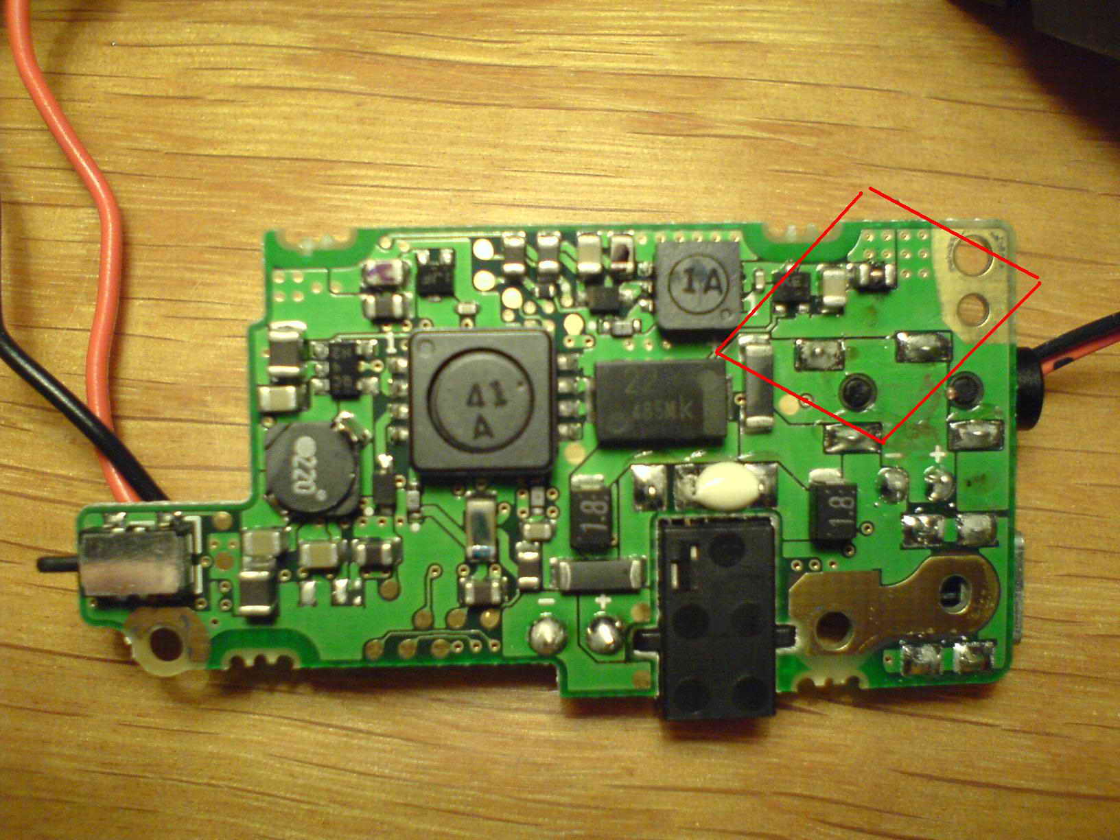 Dodalem fotke z komorki jako zalacznik, w obszarze obrysowanym czerwonymi liniami jest pare podejrzanych elementow - cewka/dlawik ktorej rozsypala sie obudowa, troche wybrzuszony tranzystor.