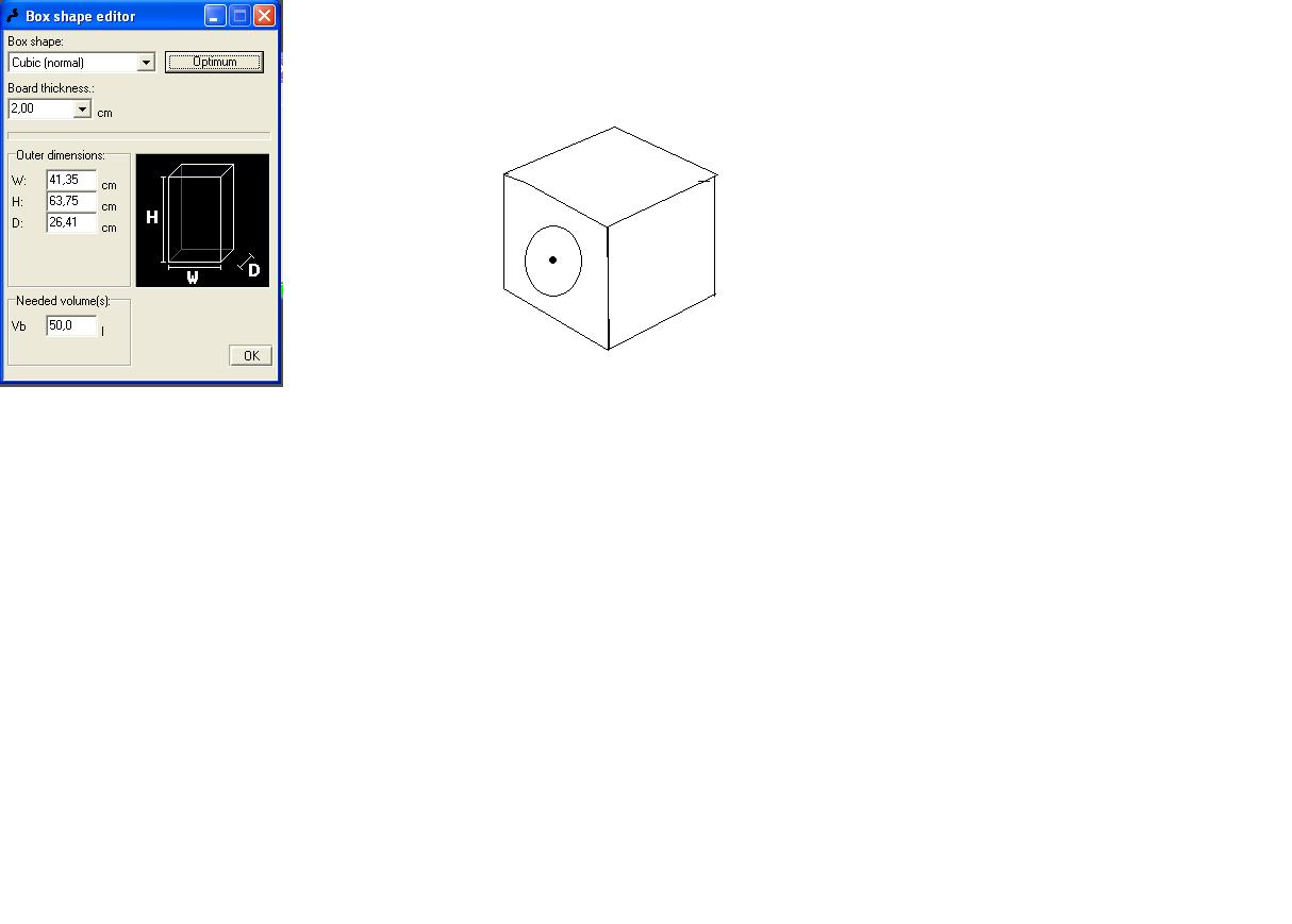 Chcem zrobic skrzynie basowa zamknieta na 50 litrów ale nie wiem jak obliczyc szerokosc dlugoisc , a zarazem nie wiem co to jest glebokosc dolna a glebokoscc górna wyszukalem w sieci cos takiego ale ja chcem zbudowac skrzynie kwadratowa
