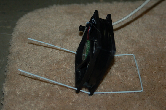 Rozcinamy kabel USB (jeśli jest to kabel z cylindrem, to usuwamy go) i wtyk przy wentylatorze. Wszystkie końcówki odizolowujemy. Baterią sprawdzamy, które kable w wentylatorze służą do zasilania i sprawdzamy jak należy podłączyć kable, by wentylator czasem nie wciągał powietrza zamiast dmuchać. jeśli nie mamy nigdzie opisu koloru kabli sprawdzamy multimetrem podłączony kabel do komputera, przez które kable idzie prąd. Gdy znajdziemy dwa odpowiadające za zasilanie pozostałe obcinamy i izolujemy, aby nie powodować żadnego zwarcia.